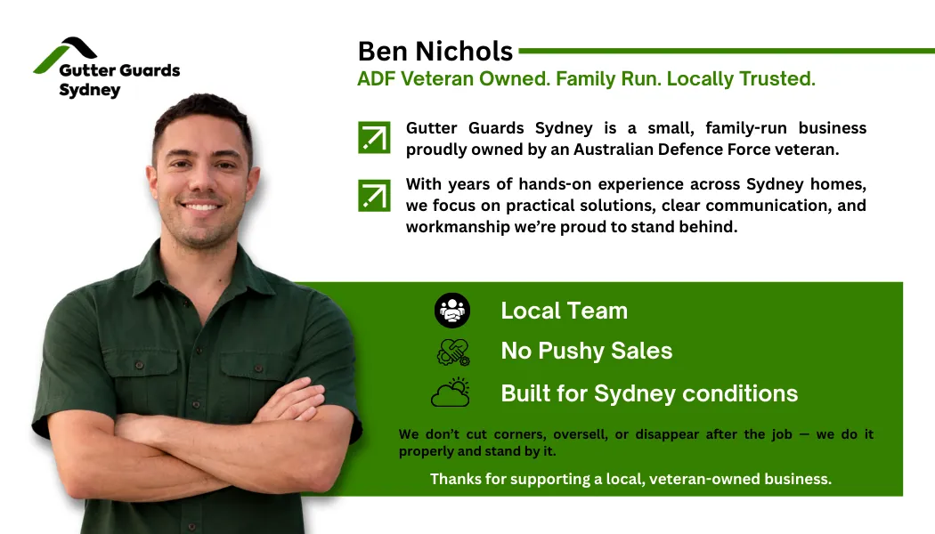 Professionally installed gutter guards designed to protect Sydney homes from water damage, bird nesting, pests and bushfire embers.